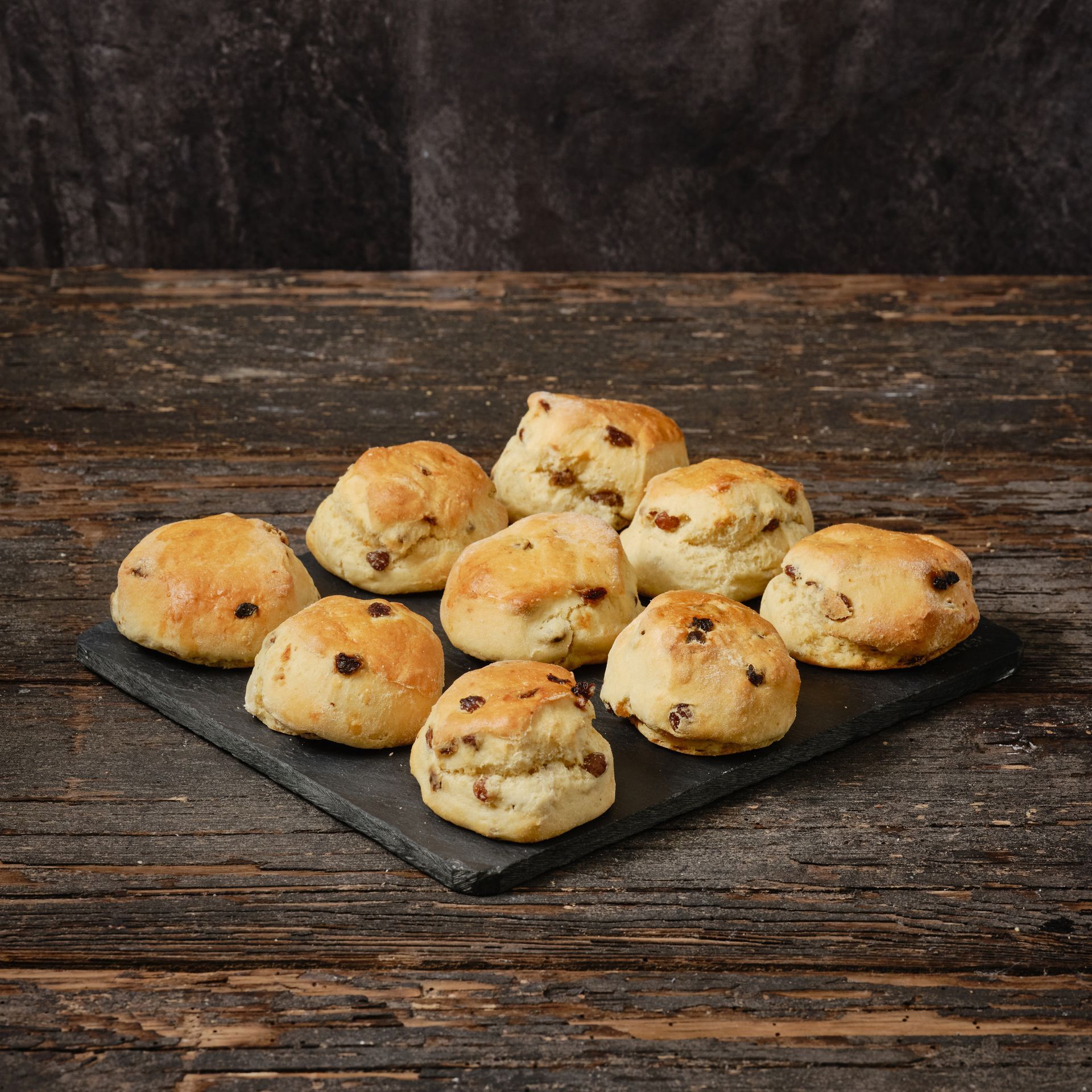 These perfectly sweet Caterfood Select fruit scones are dotted with sultanas and handmade following a traditional Devon recipe - offering you a great-tasting scone of superior quality. Serve with tea or coffee as a popular snack or feature as part of an indulgent afternoon tea. There are 28 frozen fruit scones per pack, each weighing approx. 93g.