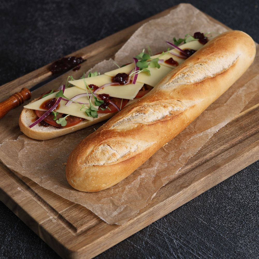 Small, white, part-baked half baguettes, supplied frozen to be baked fresh in your kitchen. The Caterfood Select Part-Baked Half Baguette (or demi baguette) provides unrivalled quality and consistency. With three decorative top cuts, this small white baguette looks and tastes great, is on average 280 mm in size (approx. 11”) and weighs 135g.