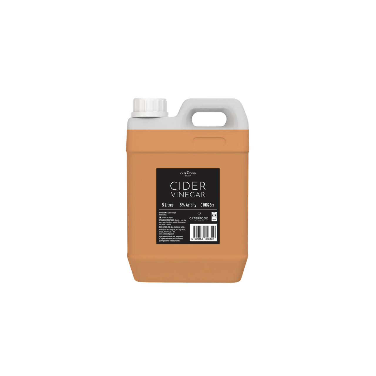Made from fermented apple juice, this Caterfood Select Cider Vinegar is a traditional, sweet and tangy apple cider vinegar. Perfect for adding extra flavour to a wide range of dishes, using as a key ingredient in salads dressings, marinades and vinaigrettes, or using to pickle vegetables. Supplied in a large five-litre plastic bottle, this product is ideal for busy foodservice kitchens.
