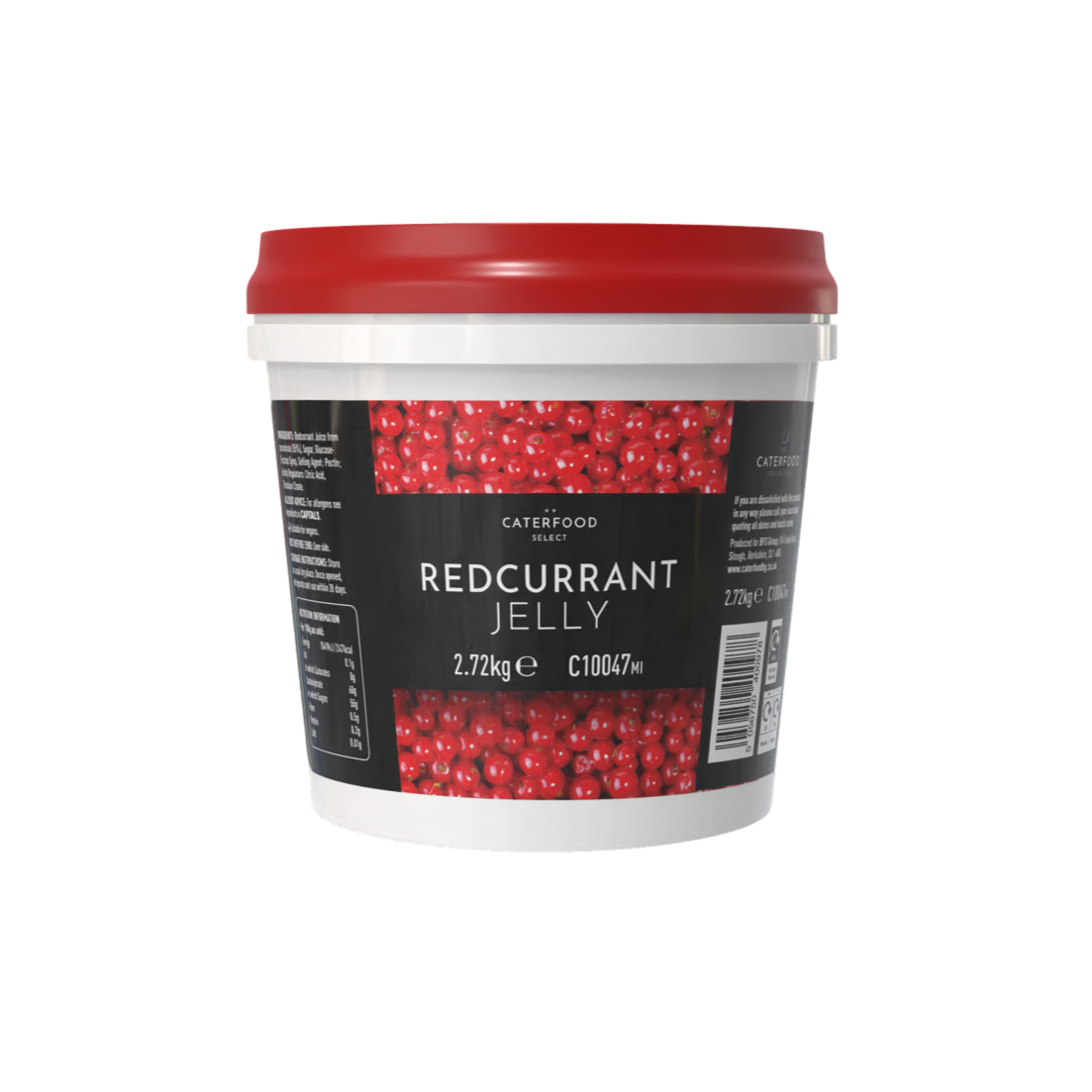 This large, wholesale tub of Caterfood Select Redcurrant Jelly offers great quality and flavour when it comes to accompanying roast dinners or jazzing up wintery mains with a subtle hint of colour and sweetness. Ideal for use in professional kitchens, this is a large 2.72kg tub of Caterfood Select Redcurrant Jelly.
