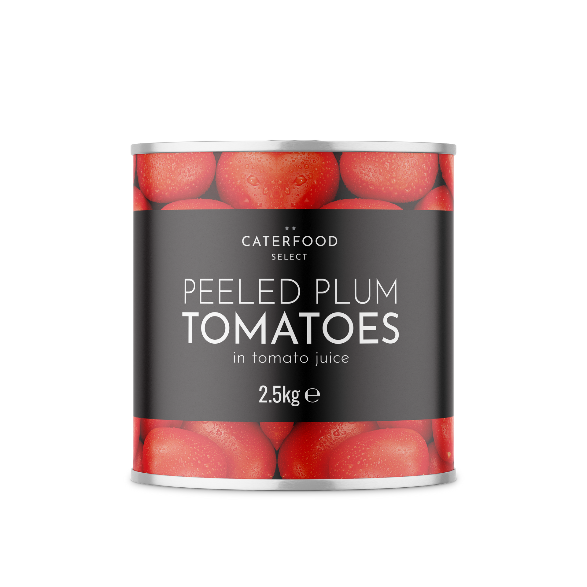 The finest, fresh Italian plum tomatoes in juice, conveniently peeled and ready to use in 2.5kg tins. A fantastic, staple ingredient for busy foodservice kitchens, these Caterfood Select Peeled Plum Tomatoes offer brilliant quality, value and taste. Each wholesale pack contains six x 2.5kg tins.